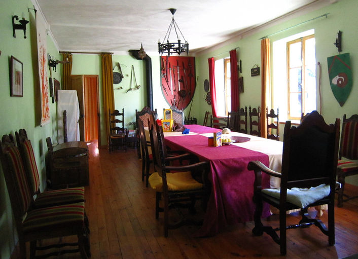 Refreshed, we climbed back up to the castle (Entrance 5 euros), and had an explore. We were loaned a good booklet in English and there were lots of explanatory boards. It was rather a good touch, I thought, for them to reproduce what it might have looked like when they were building the place.